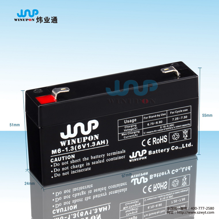 額定容量 1.3AH 98 25 52 57  6V1.2AH