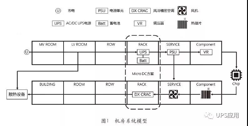 圖1是一個(gè)機(jī)房的系統(tǒng)模型。發(fā)生停電故障時(shí),蓄電池起到應(yīng)急供電的作用。數(shù)據(jù)機(jī)房中可能90%以上的電池都很少在生命周期內(nèi)碰到一次故障停電,但是電池必須時(shí)刻處于正常狀況,否則停電時(shí)電池?zé)o法放電,后果將會(huì)非常嚴(yán)重。所以電池保持在一個(gè)健康可用的狀態(tài),才能保證數(shù)據(jù)中心的供電安全。